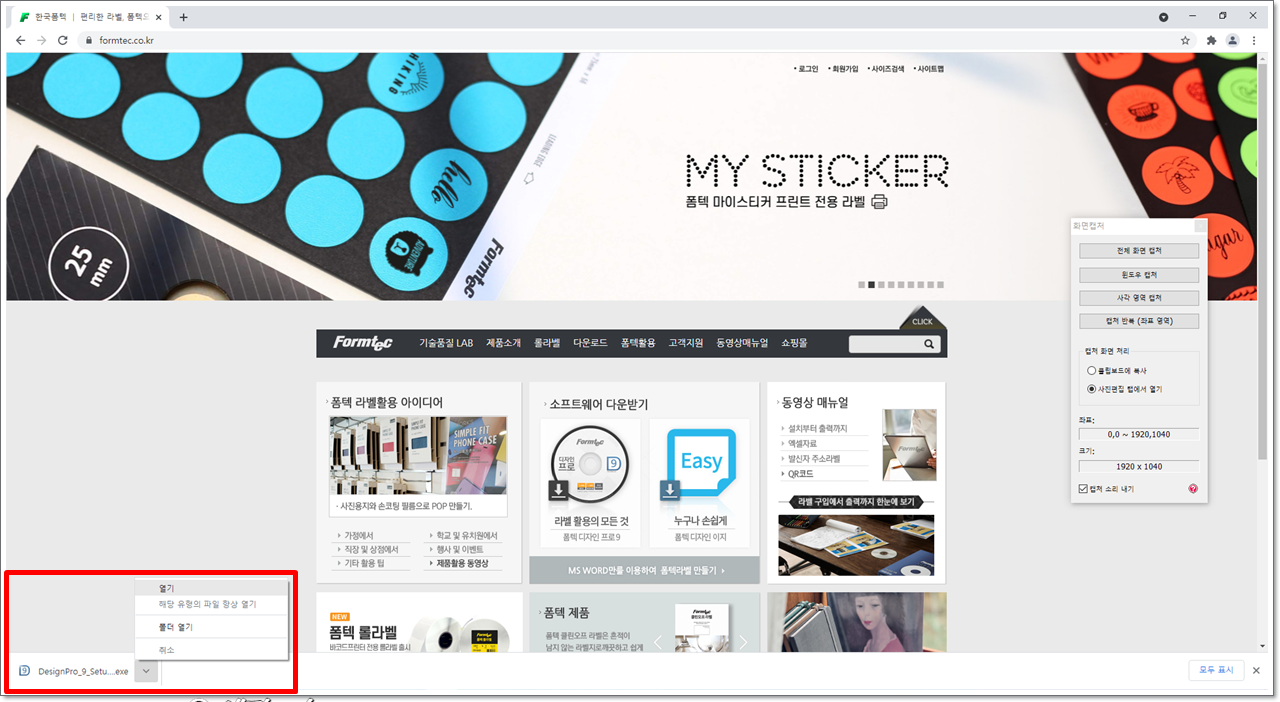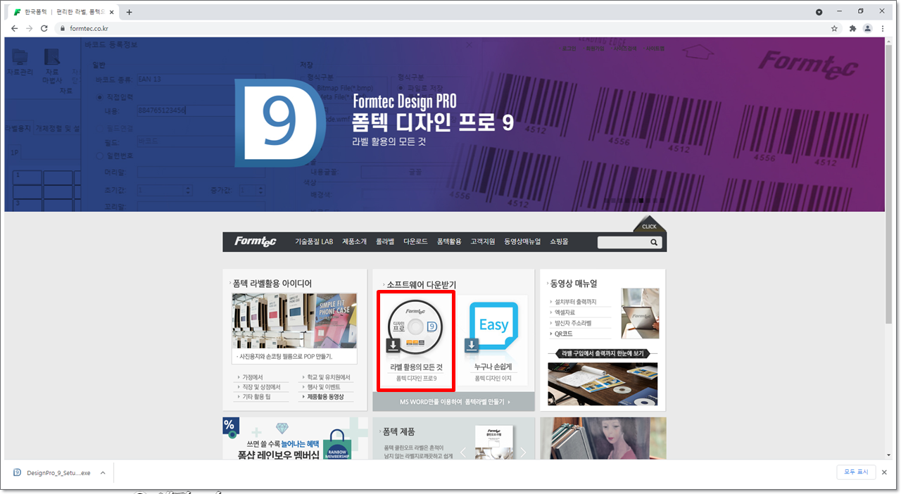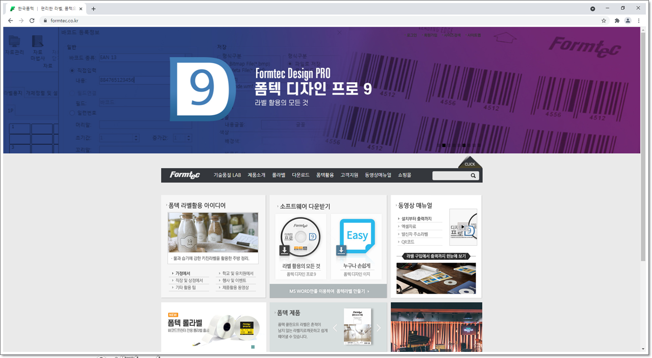 [폼텍 디자인 프로 9] 프로그램을 내려받기 위해 폼텍 사이트에 접속합니다.(https://www.formtec.co.kr/)