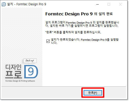 10. 설치가 끝나고 [완료]를 클릭하면 프로그램이 실행됩니다.