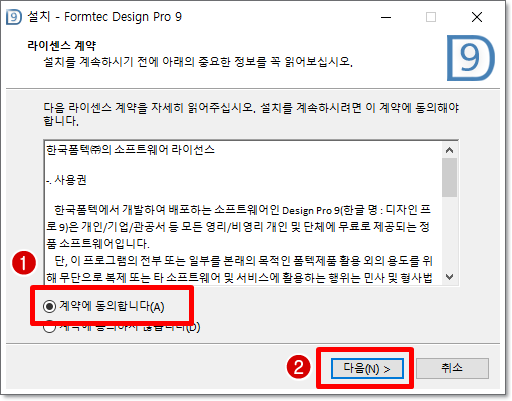 5. [계약에 동의합니다]를 선택하고 [다음]을 클릭합니다.