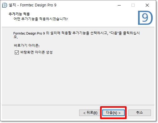 8. 바탕화면 바로가기 아이콘 생성 여부를 선택하고 [다음]을 클릭합니다.