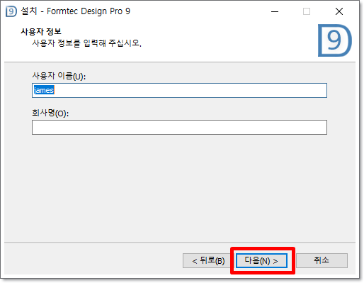6. 필요에 따라 사용자 정보를 입력하고 [다음]을 클릭합니다.