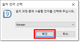 4. 설치 언어를 [Korean]으로 선택하고 [확인]을 클릭합니다.