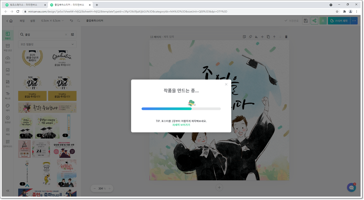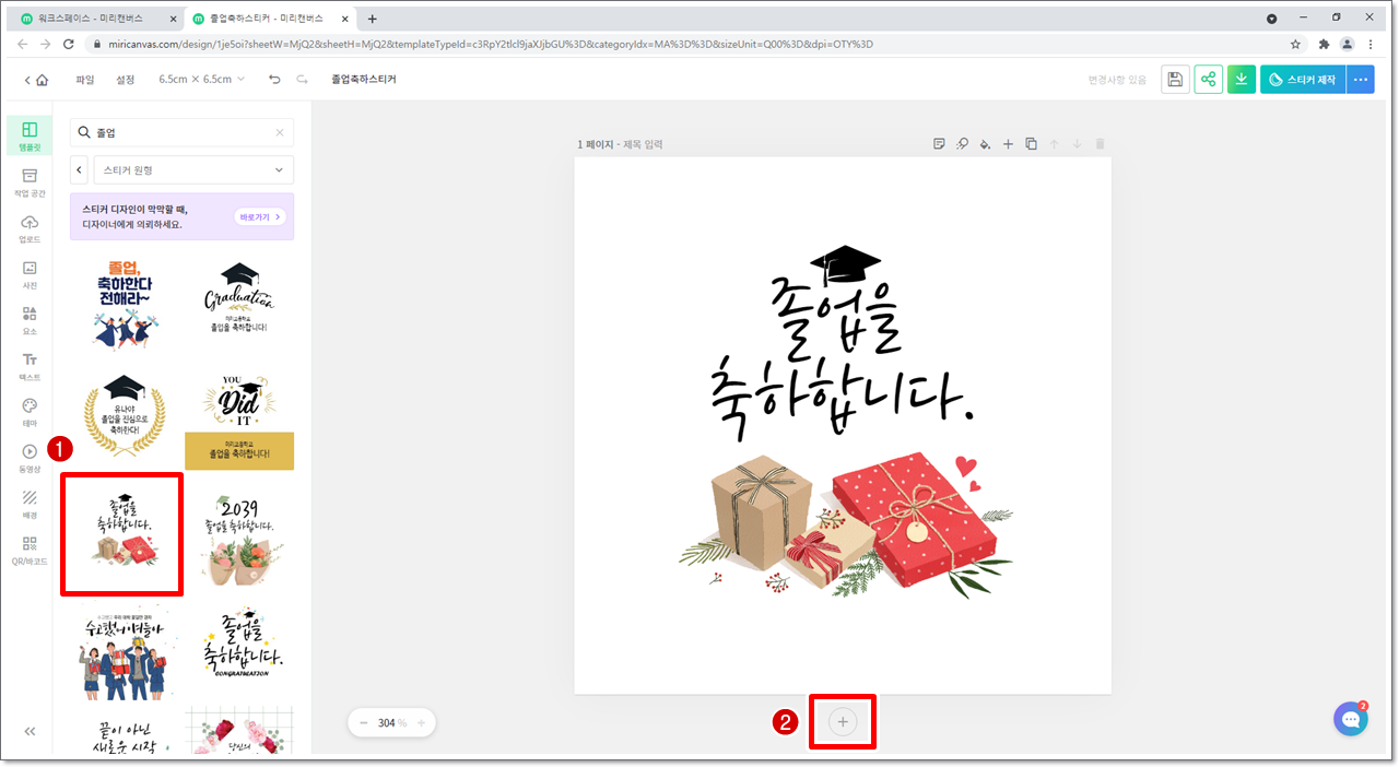 7. 위와 같은 방법으로 졸업 축하 스티커 디자인을 추가합니다.