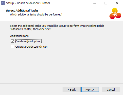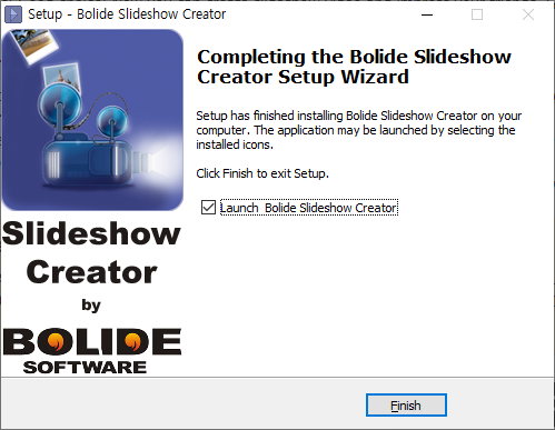 [Launch Bolide Slideshow Creator] 선택을 해제하고 [Finish]를 클릭합니다.