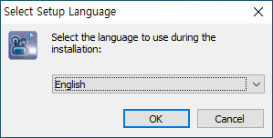 내려받은 설치 파일을 더블 클릭합니다. 언어는 [English]를 선택하고 [OK]를 클릭합니다.