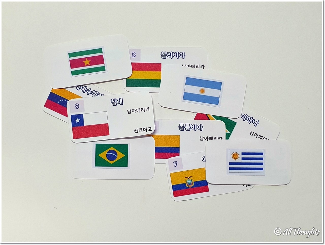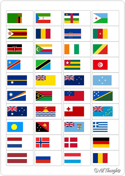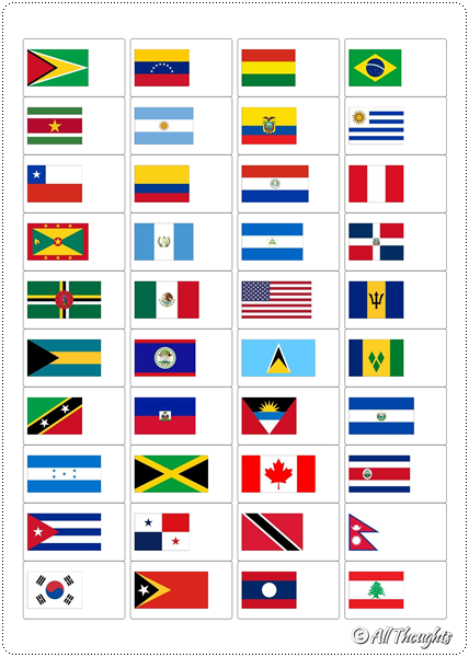 1. 세계 여러 나라의 국기와 수도 디자인 파일(1쪽당 10개국 또는 1쪽당 24개국으로 디자인된 PDF 파일과 1쪽당 40개국의 국기만 있는 PDF 파일)을 내려받아 압축을 해제합니다. 3개의 PDF 파일은 모두 대륙별(남아메리카, 북아메리카, 아시아, 아프리카, 유럽, 오세아니아) 나라 이름 가나다 순으로 정렬되어 있습니다. 세계의 국기_대륙별(40칸) 파일은 폼텍 라벨지(규격 3102, 40칸)에 맞게 디자인되어 있습니다. 라벨지에 출력 후 카드 뒷면에 바로 붙일 수 있습니다.