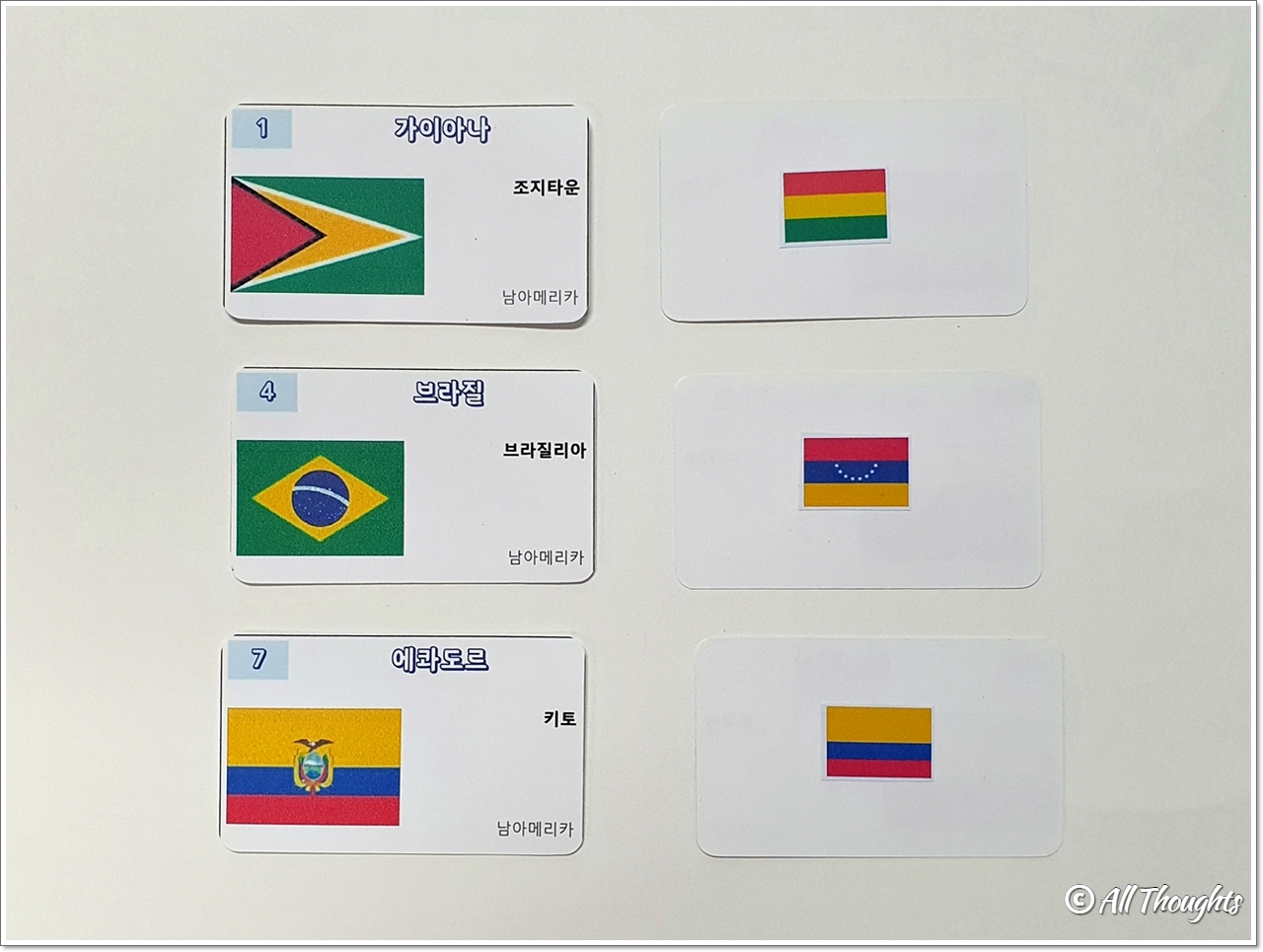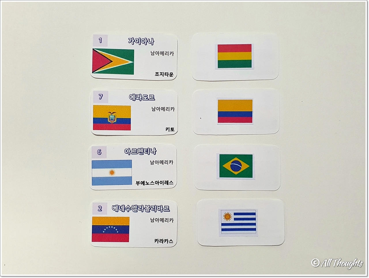 2. 세계 여러 나라의 국기와 수도 카드를 모두 뒷면(국기만 붙어있는 쪽)만 보이도록 뒤집어 펼쳐놓습니다.
