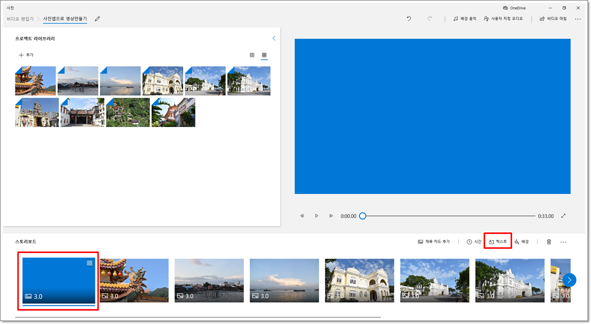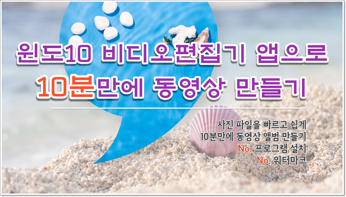 윈도우10에 기본적으로 설치되어 있는 비디오편집기 앱을 이용하면 간단하지만 사진들을 영상으로 만들 수 있습니다. 또한 동영상을 분할하거나 트리밍하는 등의 간단한 영상 편집 기능도 사용할 수 있습니다. 별도의 프로그램 설치가 필요 없어 쉽고 간단하게 동영상을 만들 때 좋은 것 같습니다.