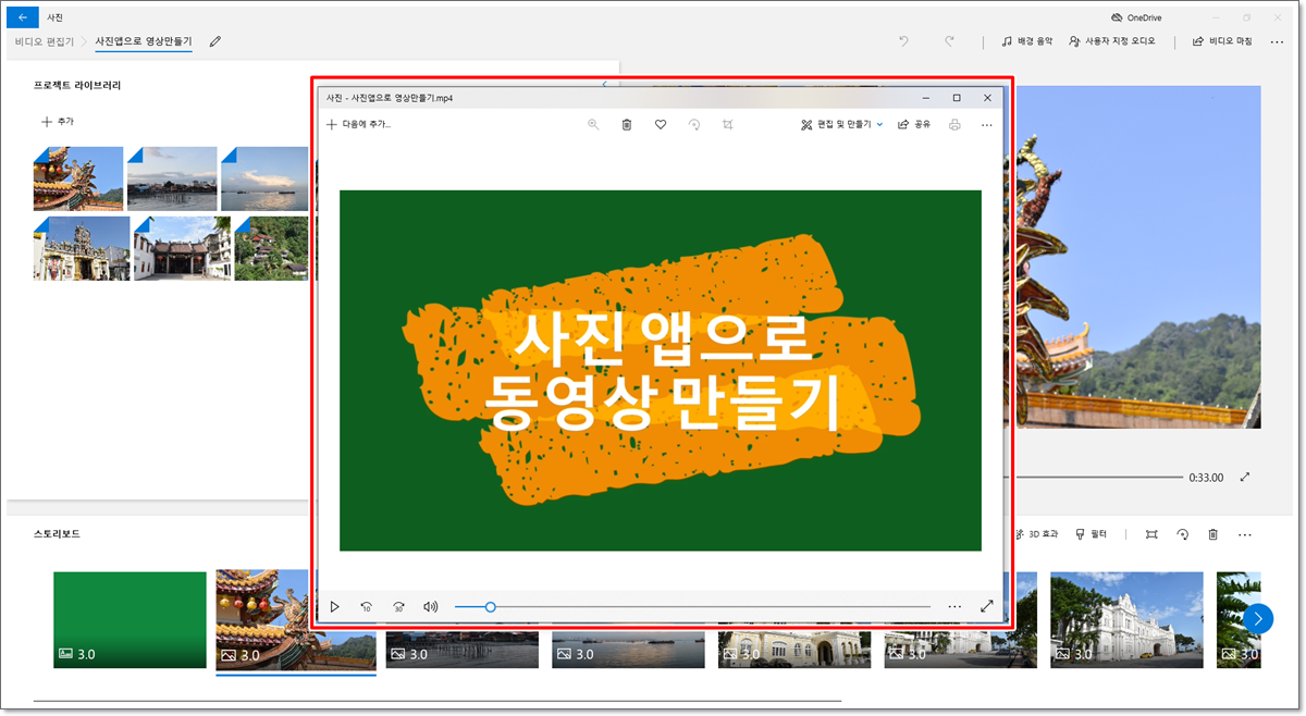 18. 만들어진 동영상을 확인합니다.